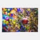 Christmas tree and red ornament ball covered with fresh snow. Colourful light around. Cheerful and joyful mood. Merry Christmas And Happy New Year. Season's greetings. Prints and gifts for anyone for fun and good mood. Horizontal or landscape oriented products and souvenirs.