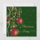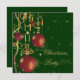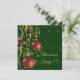 An elegant Christmas invitation featuring golden Christmas ornaments, ribbons and sparkling stars on green background. Personalize it with your text. Perfect for your corporate/company/office party.