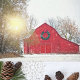 Beautiful Red Christmas Barn with Soft Sunlight Through Farm Trees
