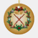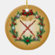 Hang this lovely bassoon Christmas ornament on you tree or get one as a stocking stuffer or award gift for any bassoonist. Crossed pair of bassoons inside a colourful music Christmas wreath for the orchestra or band musician.