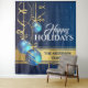 Bring the spirit of Christmas to your home or office with this beautiful three dimensional vector graphic of blue and gold swirl tree baubels hanging down off the end of pretty faux gold ribbons. They are framed by a dark blue snow filled background and have a faux gold banner across them. Personalize the templates with your custom Christmas greeting; message or quote. These are ideal for any business, corporate or family looking for a luxurious Xmas wall hanging