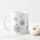 Christmas Baubles Mug featuring original design by artist and illustrator Sandra Moore. Ideal gift for anyone who loves pretty Christmas designs. Information about the work of Sandra Moore can be found at www.sandramoore.co.uk