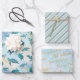 This coastal Christmas wrapping paper set features 3 different sheets: a pattern of cute turquoise blue sea turtles on an abstract beach background with a faux gold glitter wave and sparkly star accents; coordinating gold glitter, blue, and aqua stripes; and a pattern of Merry Christmas, Mele Kalikimaka, and Seas & Greetings gold faux glitter text. Check out the collection for more matching products, or contact me through Zazzle Chat if you need something special.