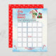 Expecting a sweet little baby boy for the holidays? We know you can just "Bearly Wait" and we're ready to help celebrate with this Baby Shower "Bingo" design featuring a sweet little boy bear with santa hat and candy cane. The little bear is accompanied by a stack of presents and at his feet is a bed of holiday greenery to add to the festive occasion. Back features a red background with a repeat pattern of white snowflakes.