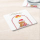 This adorable Christmas bear coaster features a kawaii-style bear wearing a Santa hat and holding a festive gift, surrounded by a candy-cane frame.
