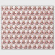 Cute bear wearing a stripe winter scarf on a white background with a red border.