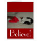 adorable black and white kitten dreaming of Christmas "believe"