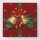 Christmas Bells and Holly Leaves Red Square Wall Clock