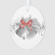 This acrylic ornament is shown with a festive Christmas holiday silver bells print.