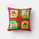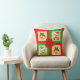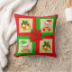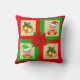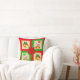 Christmas bells, poinsettia, elf on green & red throw pillow