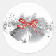This small size sticker is shown with a festive Christmas holiday silver bells print.