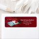 Christian Christmas greeting showcasing open Bible against red silk with snowflakes. Matching products are: postage stamps, return labels, stickers and double-sided printing greeting card and open and close style.