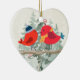 "Spread the love and joy of the holiday season with our delightful Christmas Bird Couple Ceramic Heart Ornament. Crafted with care and attention to detail, this heart-shaped ornament features a charming depiction of a pair of red cardinals, known as symbols of love and hope during the holidays. The lifelike cardinals are perched on a snowy branch, adding a touch of winter wonderland magic.