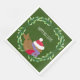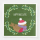 This adorable little bird is wearing his red holiday hat and purple scarf. He's sitting on green holiday branches with red berries. You can change the background colour and customize the text.