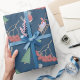 Christmas Birds and Sleds Blue Wrapping Paper