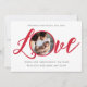 This design features Christmas baby birth holiday cute, love simple minimalist typography, family 2 two photo picture, trendy stylish calligraphy script, peace joy love quote saying, seasonal Christmas holiday birth, elegant simple red fun winter, classic chic minimal baby photo, clean trendy unique holiday, birth announcement greeting card