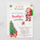 Eat, drink and be merry with this Santa Claus Christmas invitation featuring Santa claus and Christmas tree.