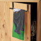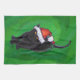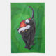 Christmas Black Cat on Green Kitchen Towel