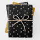 Christmas Black Gold HAPPY HOLIDAYS Script Lights Wrapping Paper Sheets (Set of 3 Sheets). Modern Christmas holiday season giftwrap with glowing fairy lights and script editable greeting HAPPY HOLIDAYS in black and white and gold and white. Change the greeting and/or text and background colours as desired in EDIT. Contact the designer via Zazzle Chat or makeitaboutyoustore@gmail.com if you'd like this design modified or would like coordinating items.