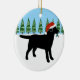 Christmas Black Labrador Santa Hat Ornament for dog lovers! Unique and funny Labrador Retriever Art created by Naomi Ochiai from Japan. Beautiful Black Labrador Silhouette design in the snow field.