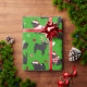 Christmas Pugs Green Wrapping Paper, Cute Black Pug Dogs in Festive Holiday Outfits.