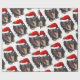 Christmas Black Tan Long Haired Doxie Santa Hat Wrapping Paper