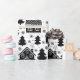 This cute holiday wrapping paper features a pattern of black houses, pine trees and snowflakes on a white background. Use for gift wrap or for paper crafts including decoupage. From our hearts to yours Happy Holidays!