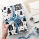 Christmas Black White House Trees Snowflakes Wrapping Paper