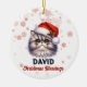 Personalized Christian ornament, cute persian cat with Christmas hat, bible quote on the back, and snow background. Luke 2:14 "Glory to God in the highest, and on earth peace among those with whom he is pleased!"