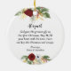 Christmas Blessings personalized ceramic ornament depicts elegant winter florals with a simple red and white rose. berries and greenery. It features the Aaronic Blessing from Bible Verse Numbers 6:24-26, "The Lord bless you and keep you; The Lord make his face shine on you and be gracious to you; The Lord turn his face toward you and give you peace." The back names and greeting can be customized to the details of your choice.
