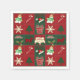 CHRISTMAS BLOCKS-PAPER PARTY NAPKINS-An allover background pattern created with red and green blocks trimmed with digital stitching. The block colours alternate. The square stitching is white. Inside each block is a Christmas themed element or two. Santa, snowman; glittered deer and a snowflake are filling a few of the squares. It’s a fun, playful holiday pattern. Choose any style/size of Zazzle paper napkins.