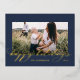 Christmas blue 1 photo botanical script foil holiday postcard