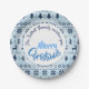 Customizable Merry Christmas paper plate in blue. Your name and message on beautiful Lapland style pattern in blue with transparent background (here pale blue background). You can easily change background colour and text (font, size, colour and position) by clicking the customize button..Matching personalized Christmas Paper napkin and more... Other models are available.