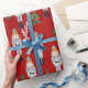 Christmas Blue Nutcrackers on Red Wrapping Paper