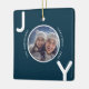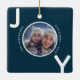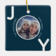Christmas blue white joy photo modern ceramic ornament
