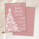 Christmas tree Boho pink baby girl shower invitation with a cute whimsical fun girl baby shower invitation for a festive Holiday baby shower.