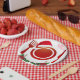 Serve your holiday treats in style with this cheerful Christmas-themed paper plate design. Featuring a festive red and white color palette, a charming place setting topped with a Santa hat, and the phrase "Bon Appétit!" in playful pink, this plate adds warmth and joy to any seasonal gathering. Perfect for Christmas dinners, holiday parties, or cozy winter celebrations. Customize it to match your event and bring a touch of magic to your table.