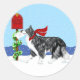 Taking his holiday greetings to the mail box, this Border Collie strolls through the snow sporting his knitted red scarf. An adorable Holiday scene sure to be your favourite this Christmas.