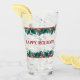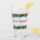 This Christmas drinking glass features two Christmas borders with the words "Merry Christmas" in between the borders. The text on the glass is customizable so you can change it to your own text or leave it as is.