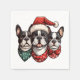 Cute illustration of Boston Terrier dogs dressed up for Christmas. Perfect for pet lovers and dog parents during the holiday season.