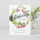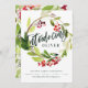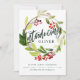 Merriest Christmas watercolor red and green botanical introducing birth announcement holiday card. Beautiful watercolor painted foliage and modern script text. Part of a collection.
