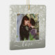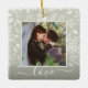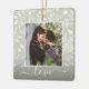 Your favorite photo on white leaves, berries and dots and ANY COLOR background (we show black.) CHANGE the word LOVE to anything! TIP: Put your text between the squares to retain the text swashes - upload a high resolution, photo cropped to square shape. This Christmas ornament makes a memorable gift for family and friends or create just for yourself. Double-sided - add any info on the back or delete our example text.