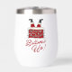 Get the laughs started with this festive insulated wine tumbler featuring Santa legs-up in a chimney and a cheeky “Bottoms Up” script in holiday red. Whether you’re celebrating at a family gathering or a Christmas party, this double-wall cup keeps drinks cold or hot in style. “Merry Christmas” and a personalized party message on the back add extra cheer to every toast.