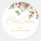 Rustic Watercolor Christmas Boughs, Holiday Sticker. Features, gold colour typography.