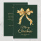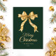 Christmas Bow Elegant Minimalist Green Gold Holiday Card