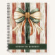 Personalized Christmas Holiday Bow on Rustic Stripes Pattern Notebook... Festive Christmas themed rustic stripes pattern notebook in shades of red, green and gold for holiday gift-giving... or as a colourful notebook journal for yourself. A holiday bow in coordinating colours lets you know this is a special Christmas design. Example text can be easily revised with your own details on the personalization template.