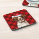 Fun coaster set for the person who loves their Brittany Spaniel dog. This one wears a Santa hat for a stylish approach to the holiday season, and sits cutely against a red buffalo holiday plaid background to decorate your home or office with seasonal pet lover joy.