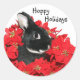 Black bunny rabbit in red poinsettias photo Christmas sticker