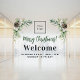 A transparent background and black text. Personalize and add your logo. Text: Merry Christmas! and Welcome. Decorated with pine sprigs and cones.