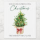 Modern Elegant Calligraphy Ink Script Have Yourself a Merry Little Christmas Wine Bottle Label includes a Watercolor Pine Tree in a paper bag with a Red Ribbon Bow, Gold and Red Christmas Ornaments.